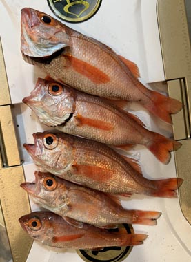 アカムツ 5匹 アジ 2匹 船中5人だけの片舷並び。金メダル を頂戴しました。 |