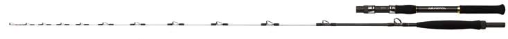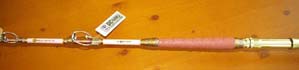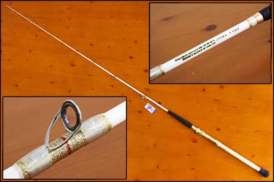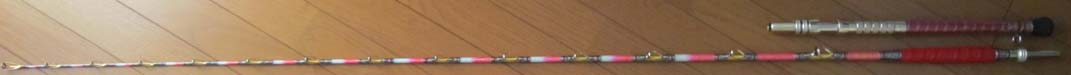 2012年12月9日落札 ネットショップのオークション形式で購入。即決価格40,500円を値下げ交渉で23,000円に。2回は25,000円で流れたが、3度目の交渉で成立。 先に100号/180cmを落札したが、200cmを越える長さがアカムツに欲しかった。 2013年1月5日、オニカサゴに使用。 穂先の感度はカーボンを思わせる繊細さ。サカナが掛かれば胴に乗る。長めがいいと思ったが、手持ちではちょっと疲れる。もうちょっと軟らかくてもいいかなと思う。あの繊細さはアカムツでも使ってみたい。 |
