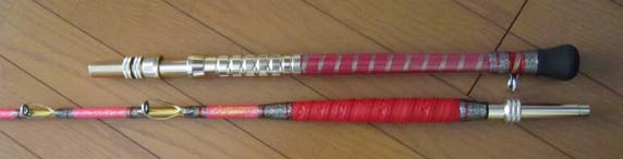 | 16 | シマノ アルゴス振り出し 50−330 | GOJINの釣りを始めたころに活躍した万能竿。この竿で、イサキ、ヒラメ、ゴウドウイカ、アカイカ、ワラサも釣った。振り出し竿の全盛期だったので振り出しだけど、長さもこの頃は330cmは当たり前の長さだった。 よく活躍してくれたし、長く活躍してくれたので記念に手放さずにいまでも置いてある。この間オークションに出て行った竿が少なくないのに良く残ったものだ。 因みに、これがGOJINの最初の竿ではなく、最初の竿は上州屋のスズミの穂先交換式の竿だった。「バカ竿」と言われたけど、この竿に変えても「バカ竿」と言われた。実績を残した竿なのでGOJINはそんな風に言われるのが悔しい。 |