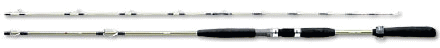 2006年5月末に購入。目的はマルイカ!今年はマルイカが好調なので、この竿でシャクリまくろうと考えた。トリガーがあるのはワンハンドでの操作がしやすい。 でも、今季のマルイカは直ブラが主流で、ブランコのシャクリはもう過去の釣法となっていた。もっと先調子気味の竿が叩き釣りの直ブラには最適。 ところが、乗り渋りは依然ブランコ釣法がよく、そんな日このロッドで竿頭を取った。 もちろんライトゲームでマダイを狙いたいし、ビシマのシャクリマダイもやってみたい。ヒラメにもライトゲームで遊べたらもっと面白いだろう。 購入価格はお店の人が相談に乗ってくれた。 マルイカのブランコ仕掛けで活躍中。 |